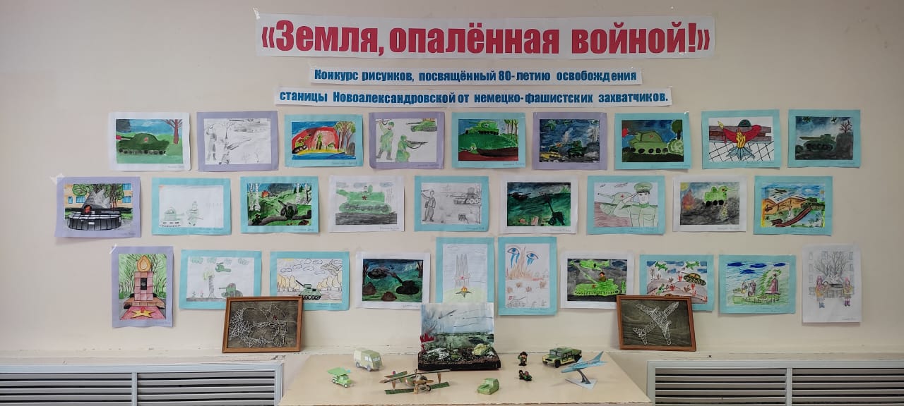 В рамках месячника оборонно-массовой и военно-спортивной работы в МУДО «Детско-юношеский центр» с 1 по 10 февраля проведен конкурс рисунков «Земля, опаленная войной!», посвященный 80-летию освобождения станицы Новоалександровской от немецко-фашистских захватчиков.