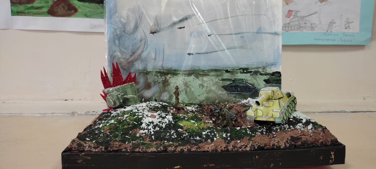 Большое внимание заслужили работы творческого объединения «Виктория». Обучающиеся объединения создали два макета танкового боя.