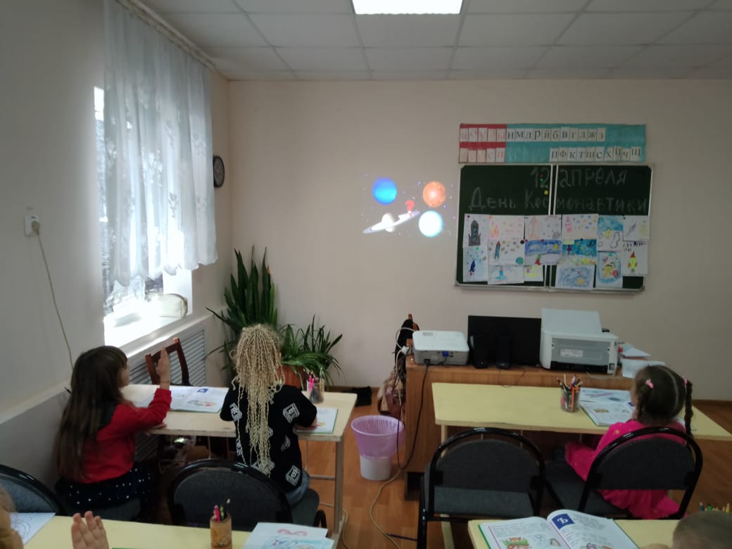 Ребята из объединения «Радуга» посмотрели интересный фильм о полете Ю.А.Гагарина в космос.